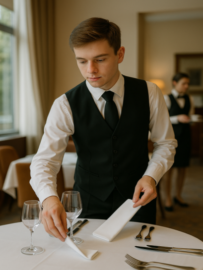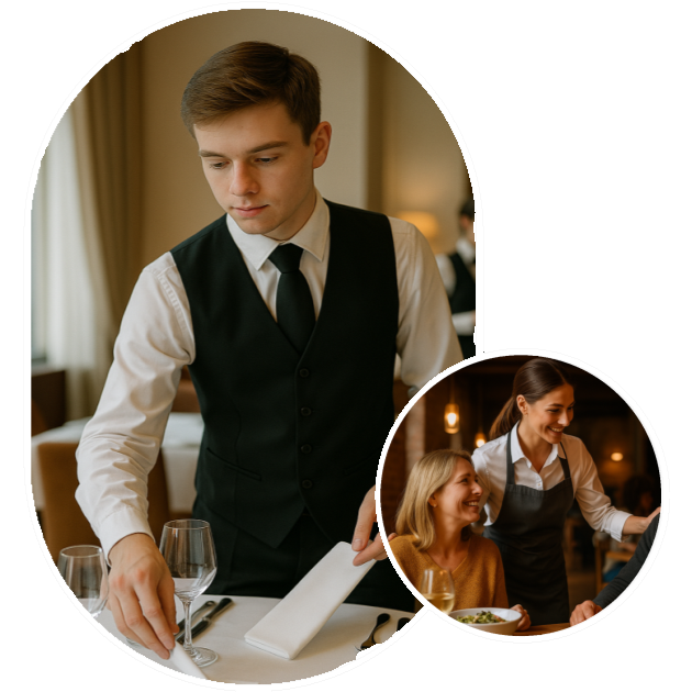 Eine Ausbildung in der Hotellerie öffnet dir viele Türen und bietet spannende Einblicke in die Welt der Gastronomie und Hotellerie. Du lernst den Umgang mit Gästen, Organisationstalente und Teamarbeit – alles praxisnah und direkt im Betrieb. Jeder Tag bringt neue Herausforderungen, kreative Aufgaben und die Chance, wertvolle Erfahrungen zu sammeln. So legst du den Grundstein für eine abwechslungsreiche und erfolgreiche Karriere