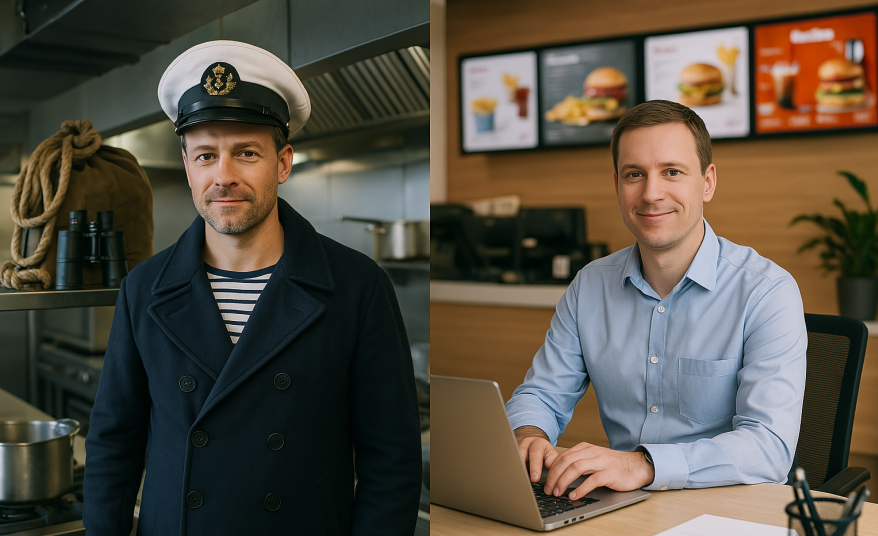 Mein Weg ist vielleicht nicht ganz klassisch, aber genau das macht ihn spannend. Angefangen habe ich mit einer Ausbildung zum Konditor. Danach ging es für einige Jahre zur Marine, wo ich zur See gefahren bin und eine ganz andere Welt kennenlernen durfte.